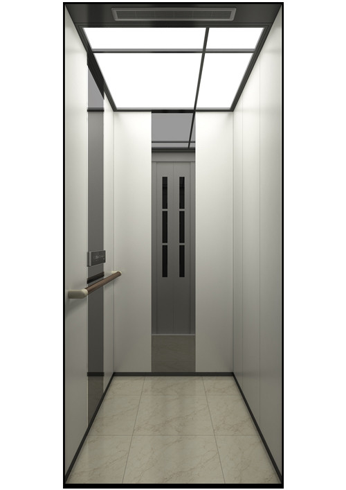 天井:ECO-XY,鏡面不銹鋼  前側(cè)板:彩紋鋼板(YP08)  門楣:彩紋鋼板(YP08)  兩側(cè):彩紋鋼板(YP08)+鏡面不銹鋼飾條  后側(cè)板:彩紋鋼板(YP08)+鏡面不銹鋼  轎門:彩紋鋼板(YP08)  操作盤:BM-D2F9(鏡面不銹鋼)  扶手:WIN-002(發(fā)紋不銹鋼)  地板:PVC(FL-P14)
